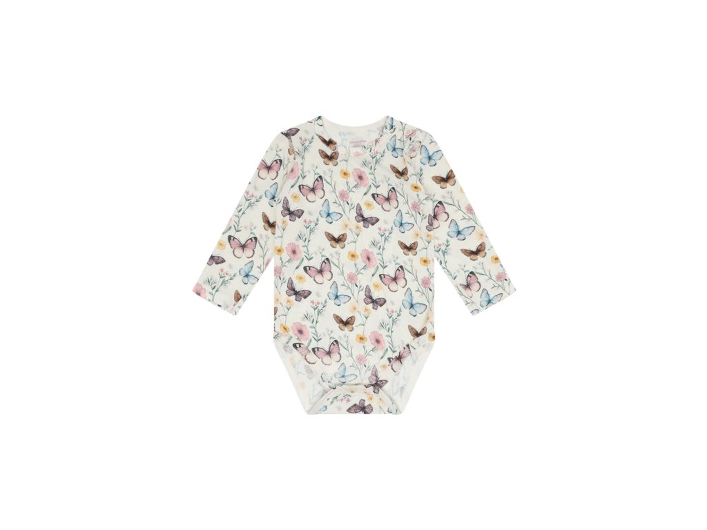 Lehké bambusové body s dlouhým rukávem s kouzelným motivem letní louky s motýlky