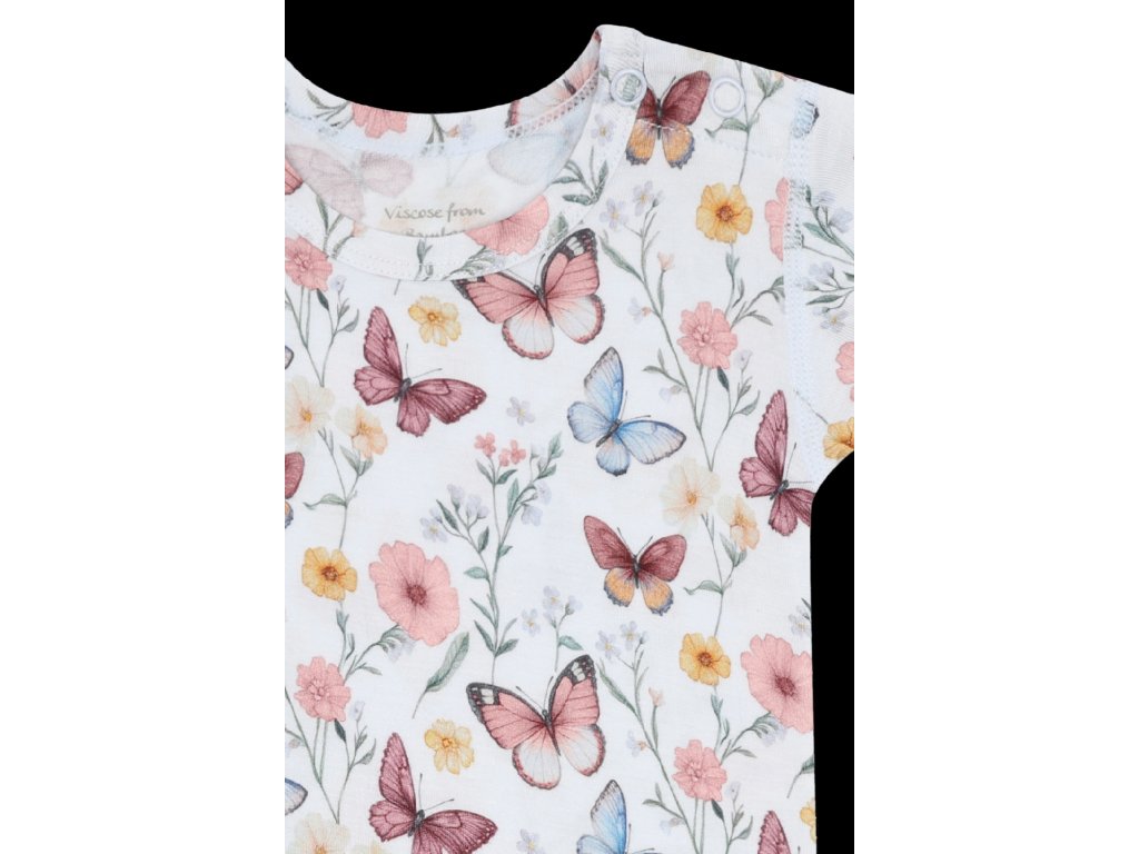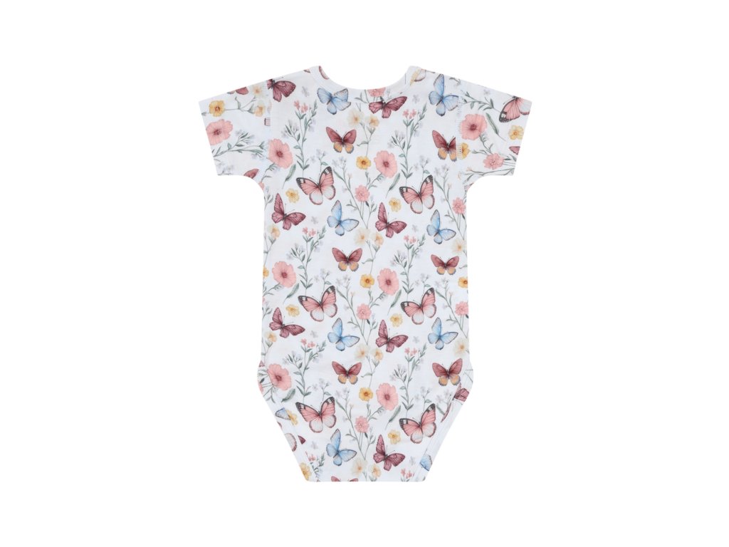 Lehké letní bambusové body s krátkým rukávem s kouzelným motivem letní louky s motýlky