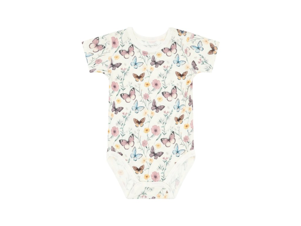 Bambusové body Hust and Claire krátký rukáv louka s motýlky - ivory