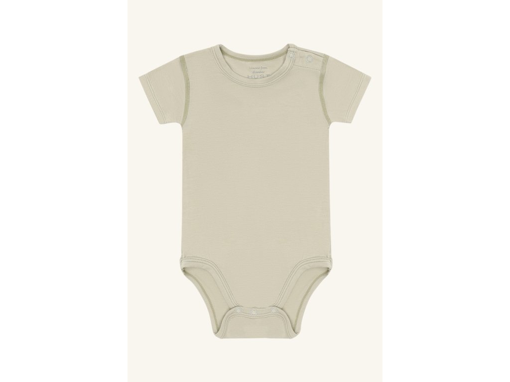 Lehké letní bambusové body s krátkým rukávem v decentní šalvějové zelené která se hodí pro kluky i holky.