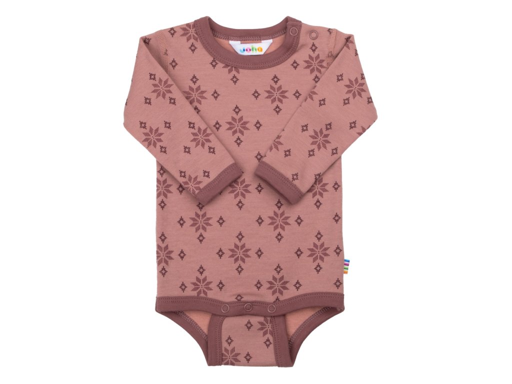 Body dvouvrstvé merino/bavlna JOHA - hvězdičky na třešňové