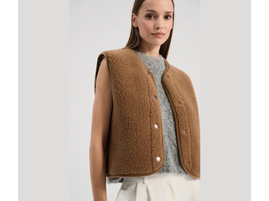 Dámská krátká vlněná vesta Alwero TYB - Teddy Brown