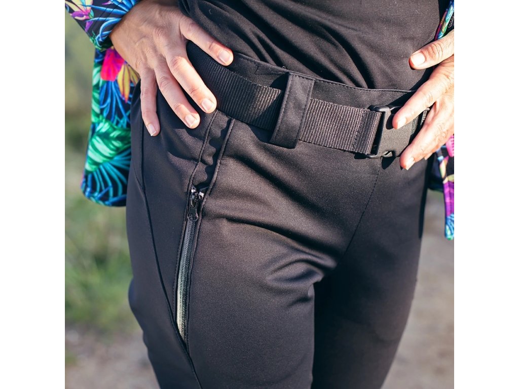 Černé softshell kalhoty Šijeme srdcem jsou dokonale vyladěné. Kvalitní pružný softshell (vodní sloupec 18000 mm/ parapropustnost 12000 g /m2/24 hod) doplňují promyšlené detaily v podobě praktického stahování v pase s odnímatelným páskem, díky čemuž skvěle padnou každé postavě a lahodí ženským křivkám. Kapsy mají voděodolný zátěr a nohavice jsou taktéž opatřeny stahováním na suchý zip. Hledáte-li funkční outfit, zkombinujte kalhoty s dámskou funkční mikinou, softshell bundou či vestou a můžete vyrazit za dobrodružstvím.