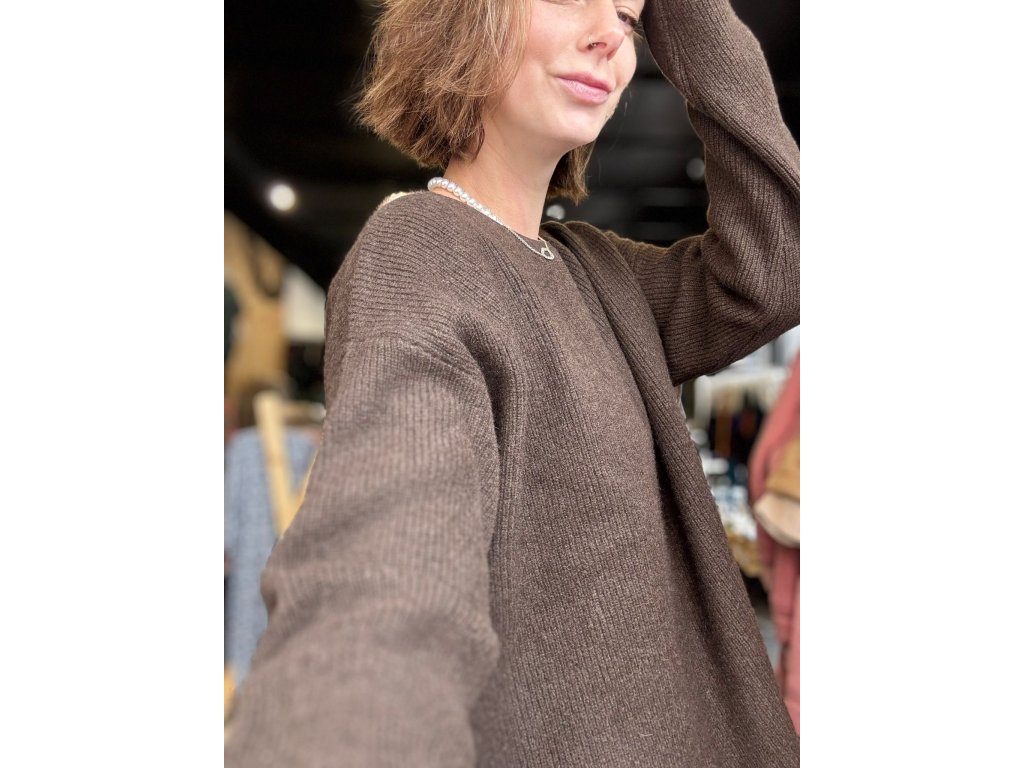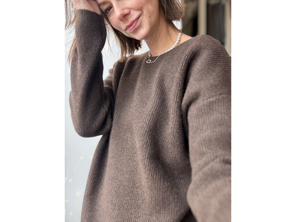 Dámský svetr z jačí vlny - oversized - středně hnědý