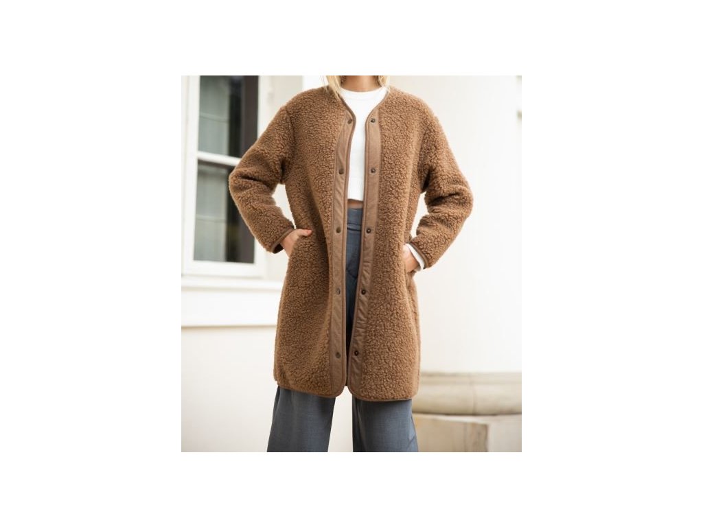 Kabát je vyrobený se 100% ovčí vlny v úpravě "beránek". Vnější strana je nadýchaná, vevnitř je hladká základna. Bunda je lehká, ale velmi hřejivá. Doporučujeme na jaro a podzim, kdy skvěle doplní váš outfit a zároveň poskytne jedinečné teplo a pohodlí pravé vlny.