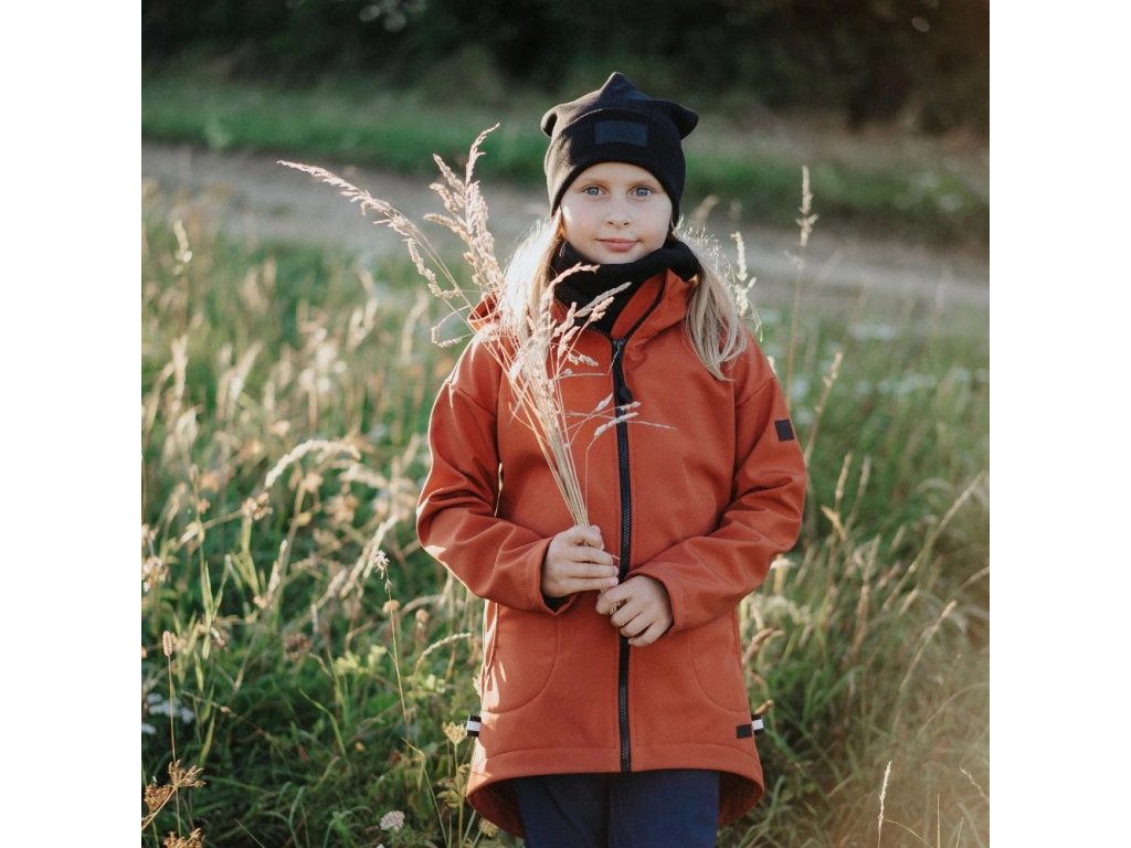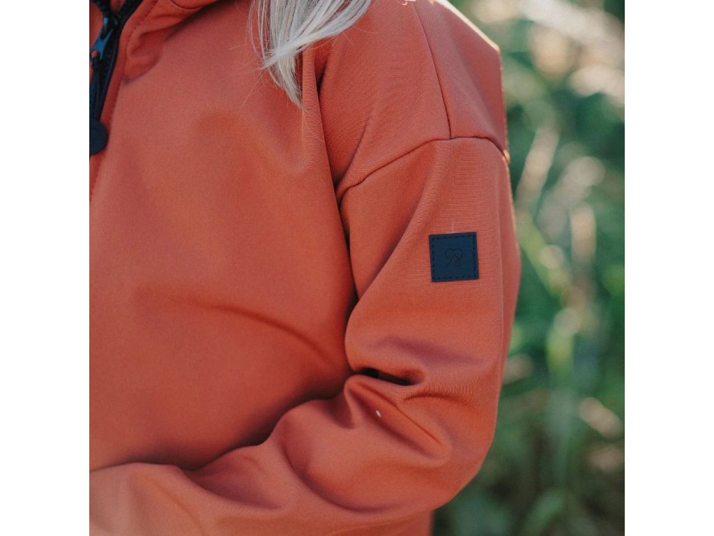 Dětský softshell oversize kabátek Šijeme srdcem terakota