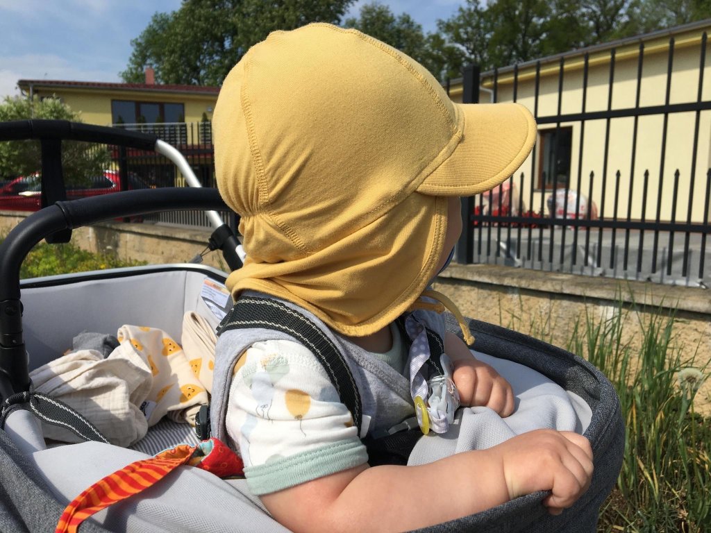 Ideální doplněk do šátků a nosítek. Kšilt je měkký, takže nepřekáží, když si drobeček položí hlavičku. Zároveň je dost dlouhý, aby poskytoval efektivní ochranu proti sluníčku. Plachetka vzadu je dostatečně dlouhá a zakrývá celý zátylek i kus ramínek. Jemný a tenký a funkční bambusový úplet je prodyšný. Vzadu všitá gumička takže čepička skvěle sedí..