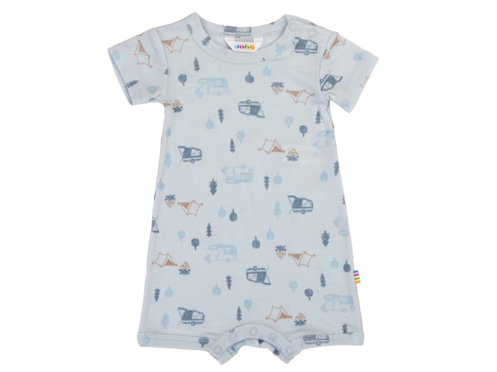 Overal má krátké rukávy a nohavice, díky tomu ho lze nosit samotný, bez kalhot. Je ideální na nošení v létě do autosedačky, na spaní v horkém dni, do šátku nebo nosítka.