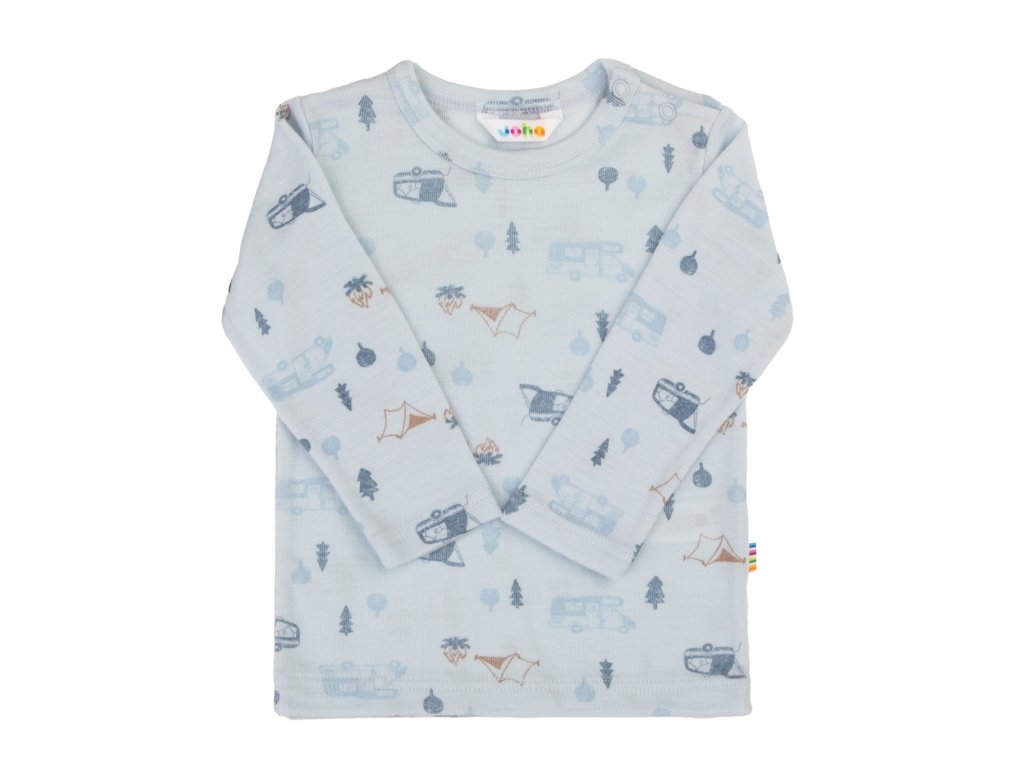 Merino triko dlouhý rukáv JOHA kempování na modré