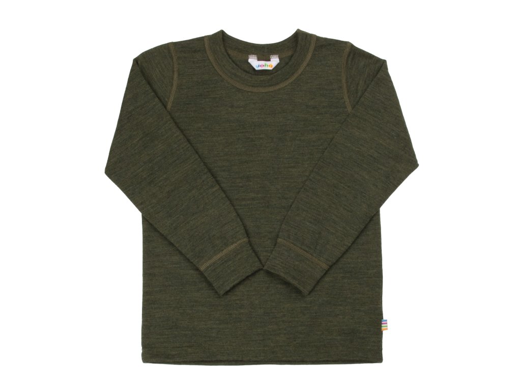 Dětské merino triko s dlouhým rukávem v krásné mechově zelené.