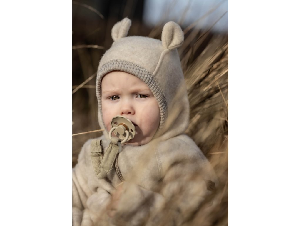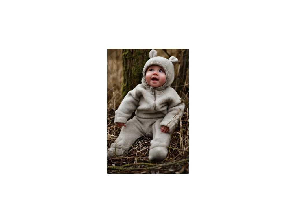 Merino zimní overal Mikk-line s kapucí a s ouškama - Melange Offwhite