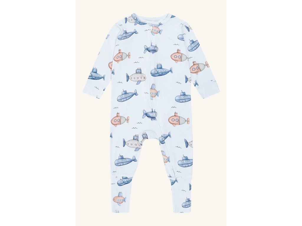 Velmi jemný, lehký bambusový overal vhodný do parných letních dnů s roztomilými obrázky ponorek