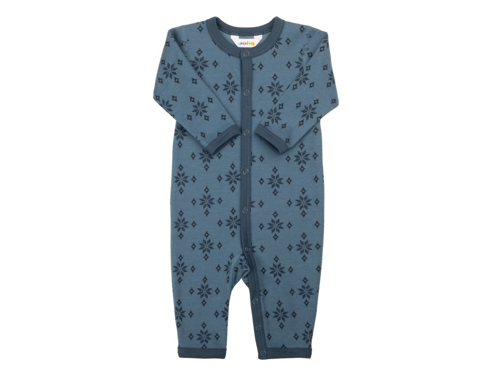 Dvouvrstvý funkční overal s krásným vzorem hvězdiček. Vnitřní vrstva na tělo je vyrobena ze 100% bio bavlny. Vnější vrstva je vyrobena ze 100% merino vlny. Obě části jsou spojeny polyamidem, který nepřichází do styku s pokožkou.
