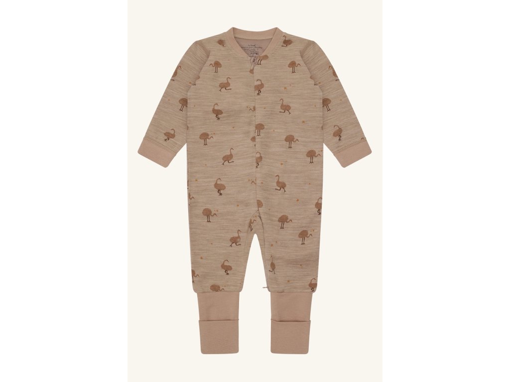 Overal se zipem merino/bambus Hust and Claire - pštrosi na hnědé