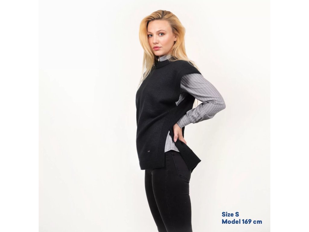 Stylová dámská merino vesta, která skvěle doplní jak kalhoty, tak sukni.