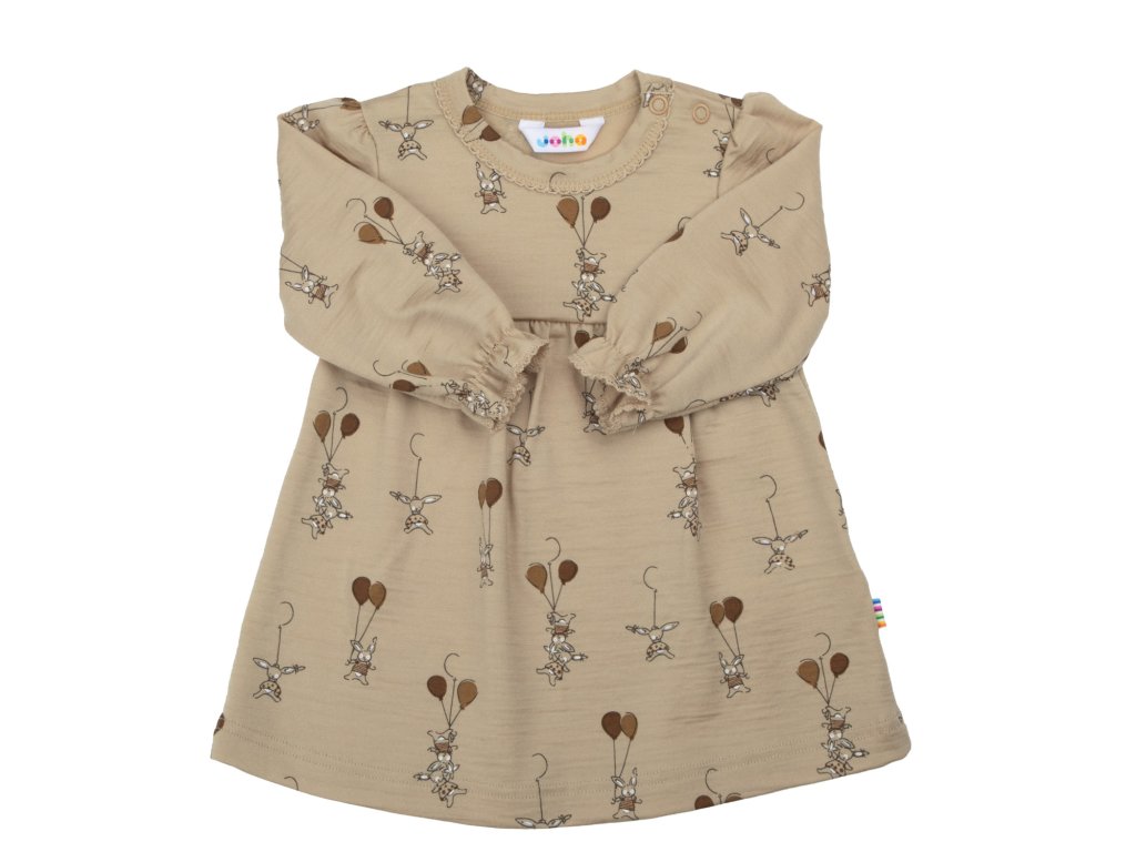 Šaty z merino vlny pro každodenní nošení s kouzleným vzorem zajíčků s balonky.