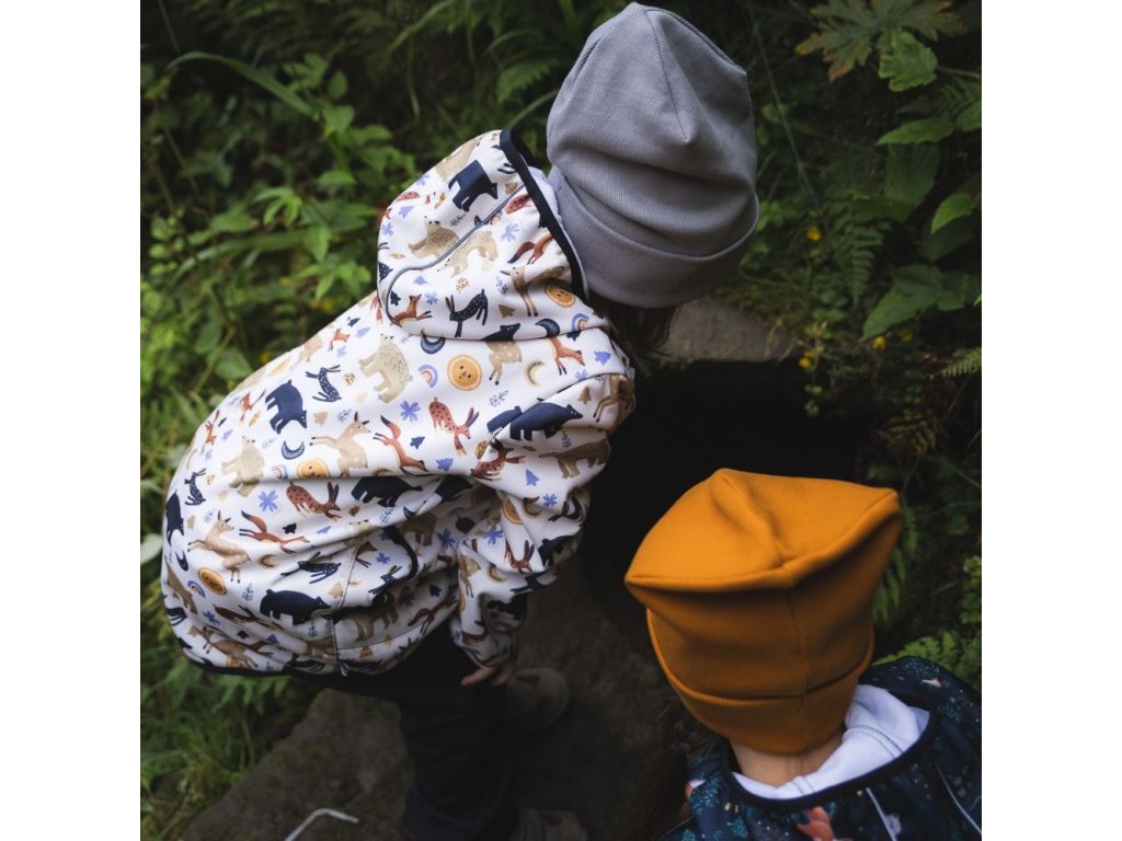 Softshellová bunda dětská Šijeme srdcem 30/15 - béžová se zvířátky