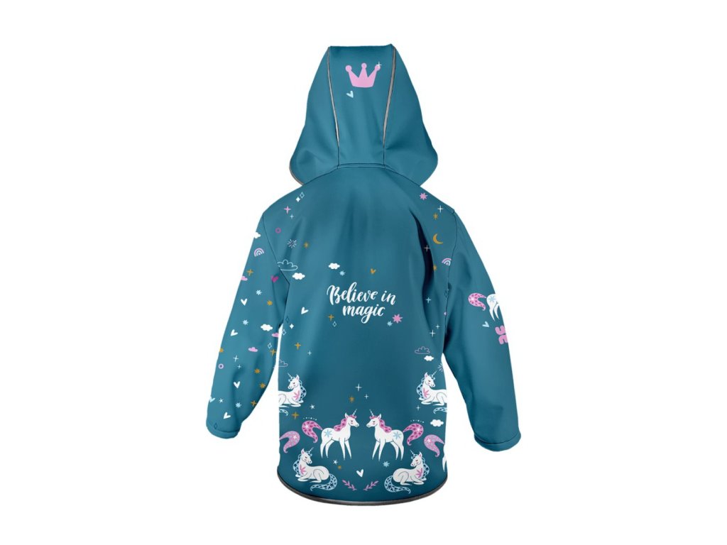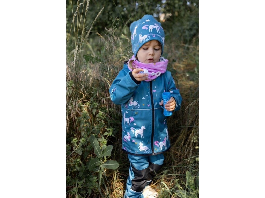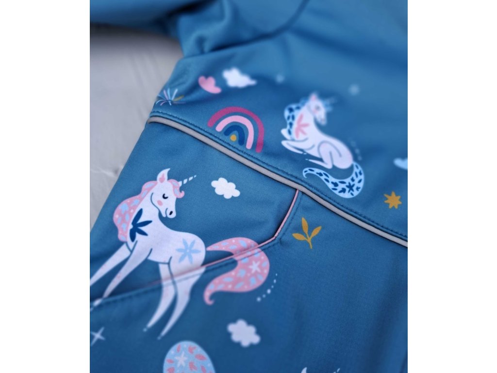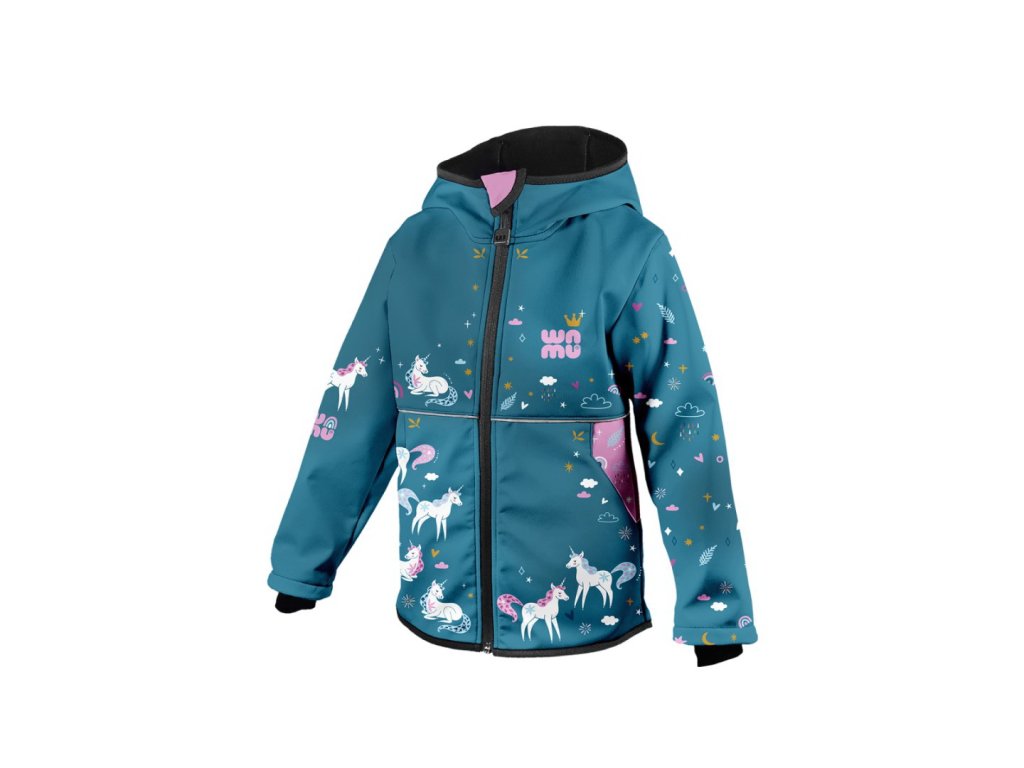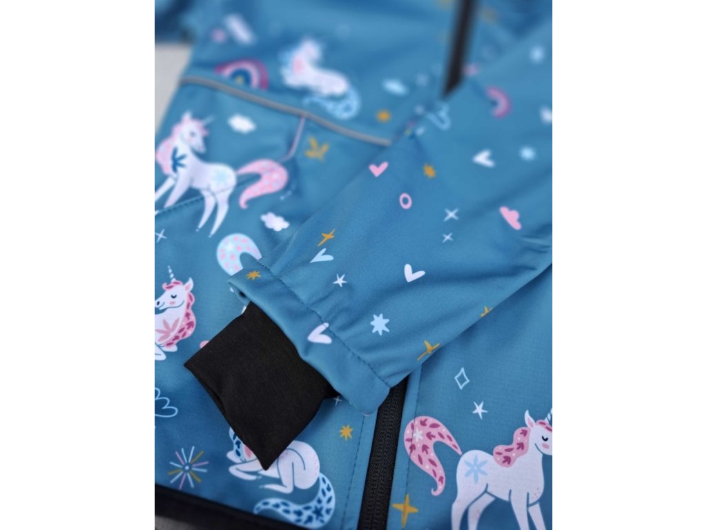 Softshellová bunda dětská WAMU - jednorožci na petrolejové