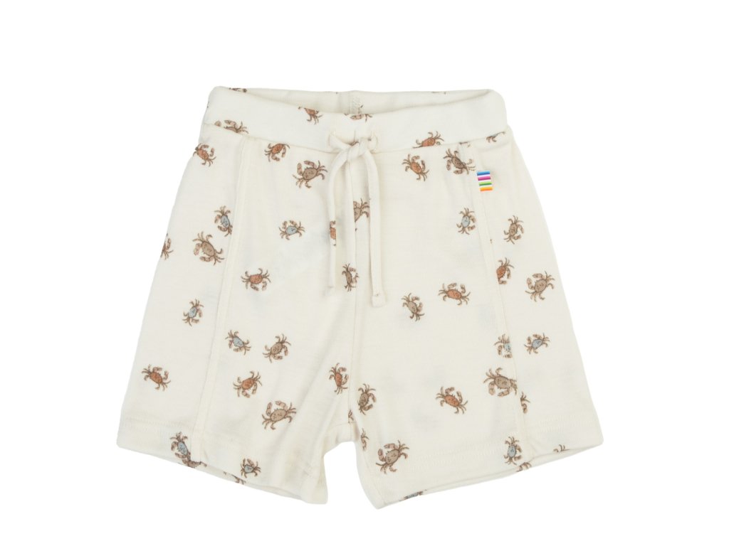 Lehké funkční kraťasy ze směsi merina a hedvábí v neutrální barvě s obrázky krabů pro holky i kluky
