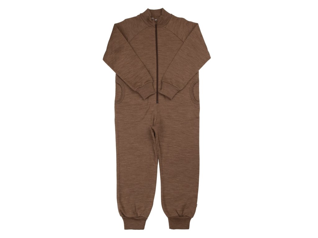 Teplákový merino overal s kapsami JOHA - mléčná čokoláda