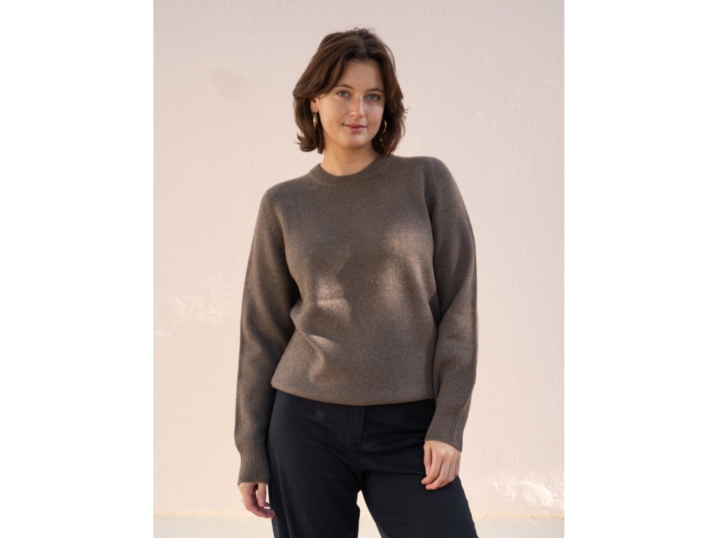 Unisex svetr z jačí vlny - roundneck - středně hnědý