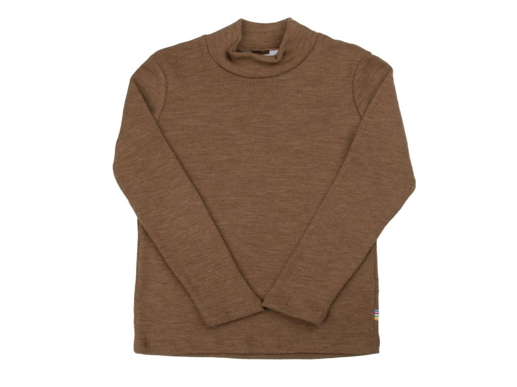 Žebrované merino tričko s rolákem mléčná čokoláda