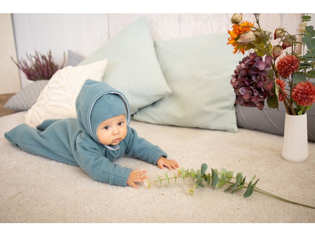 Overal je silný, hřejivý. Zároveň je ale lehký a pohodlný. Je dostatečně široký, kdybyste chtěli přece jen obléci více vrstev pod. Merino vlna je velice hřejivá, ale zároveň i prodyšná. Dítě se v ní nepotí, nepřehřívá. Je v teple, suchu a pohodlí.
